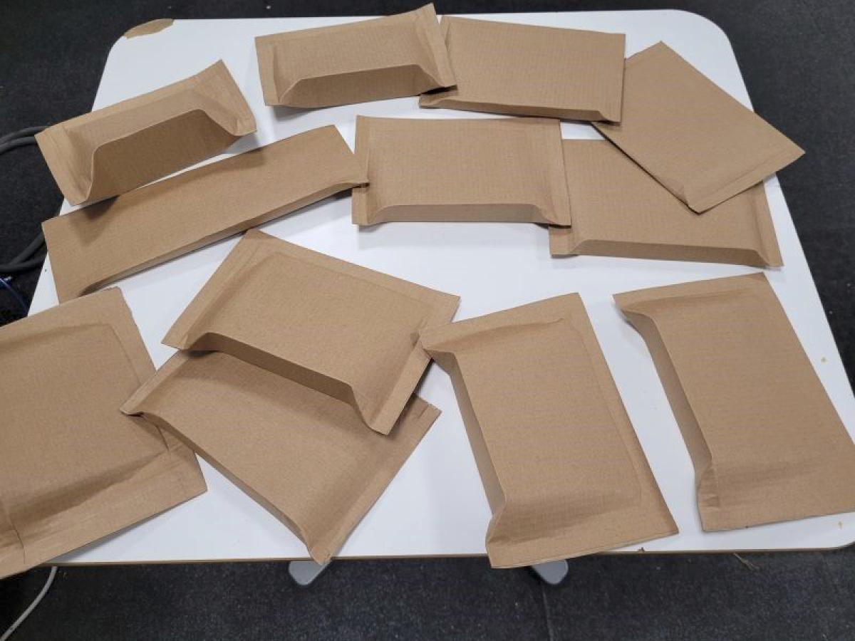 Fabrication automatisée par scellage à froid de pochettes et de boites en papier ou en carton ondulé, résistantes, sur mesure et personnalisées.